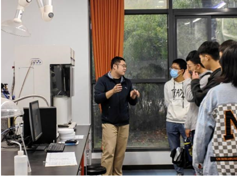 随后,徐建强、李俊老师分别就实验室安全与应化专业的特色与办学优势进行了详细的解读,高俊老师带领同学们参观了场发射扫描电子显微镜、X射线衍射仪、紫外可见光学分析仪等大型仪器,朱国银老师就部分仪器的操作和使用规范进行了介绍。