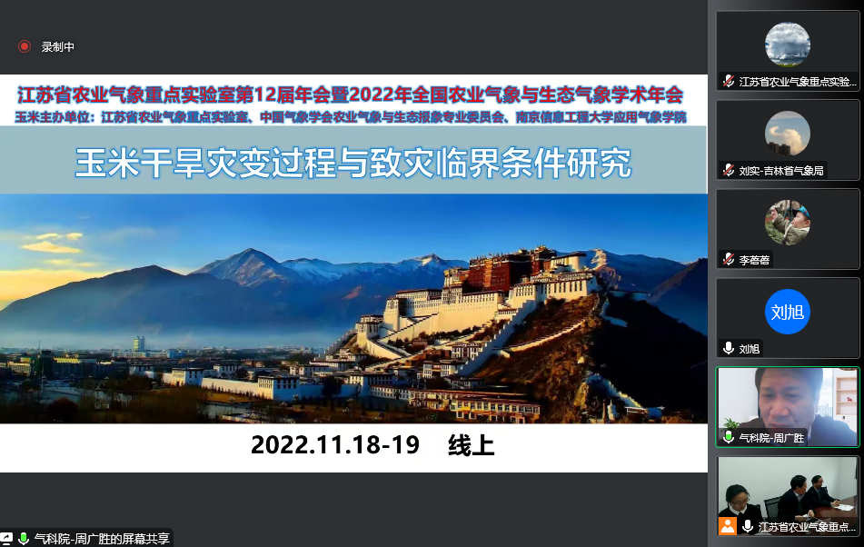 2022年11月18日,“江苏省农业气象重点实验室第12届年会暨2022全国农业气象与生态气象学术年会”在南京信息工程大学召开。来自中国气象局、中国气象科学研究院、中国科学院、中国农业科学院、全国高校等300名专家、学者和研究生代表参加会议。