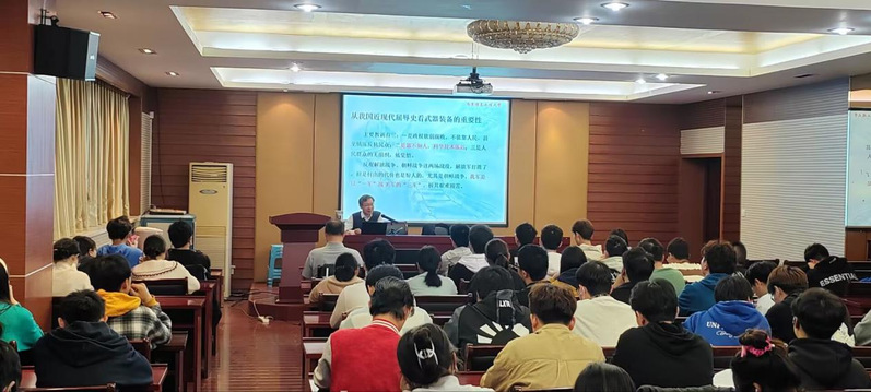 戴跃伟详细介绍了武器装备的发展历史,从古代兵器论著、到近现代史、再到俄乌战争,说明武器装备的发展及其重要性。随后,他向同学们深入讲解了武器装备的种类及用途,并点明了武器发展的方向——趋向无人化和自动化。戴跃伟依据同学们的专业特点,鼓励他们在通信领域上奋力拼搏有所作为,积极投身于祖国的国防事业。