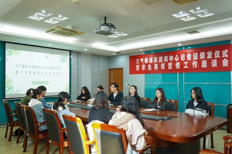 11月5日上午,大气科学学院于气象楼713会议室开展青年新闻中心记者证颁发仪式暨学生新闻宣传工作座谈会。学院党委副书记、副院长张皓出席,学院青年新闻中心、“风行”志愿者全体成员参加,活动由辅导员王阿童主持。