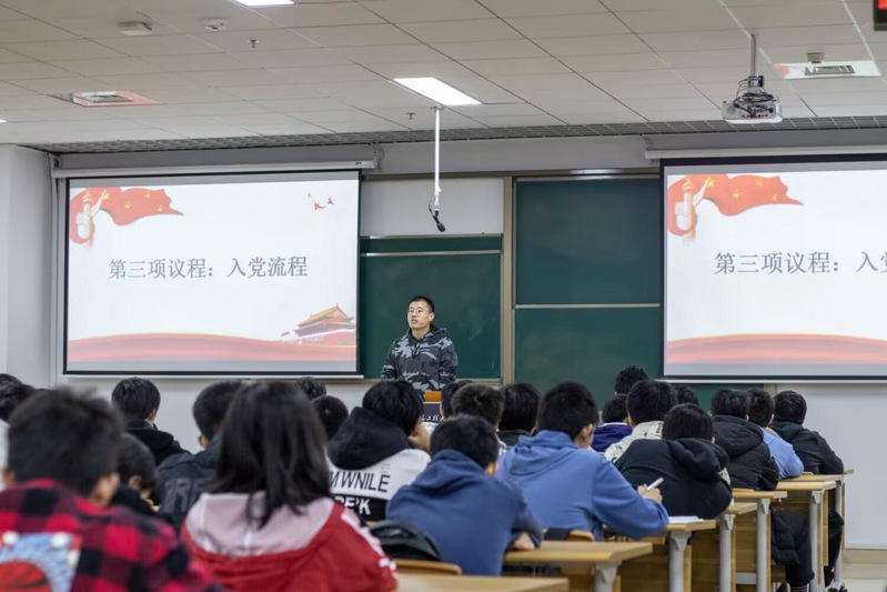 大会还邀请优秀团支部书记代表魏子韬、优秀班长代表赵咏琪等进行了班团一体化建设经验分享。魏子韬结合PPT带领同学们回顾了党的伟大奋斗历程,强调了艰苦奋斗的重要意义,鼓励同学们坚定不移跟党走,争当优秀共青团员,争做担当民族复兴大任的时代新人。赵咏琪分享了班级日常管理与团支部建设协同推进的心得感悟,强调了班团一体化建设的重要性。大会还就学生班级党建、团建等相关工作进行了培训交流。