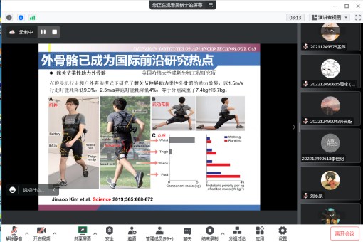 11月9日,自动化学院特邀中科院深圳技术研究院研究员吴新宇进行线上学术报告。本次报告的主题为“人机融合外骨骼机器人系统”,报告由自动化学院副院长葛泉波主持,相关专业师生积极聆听线上报告。