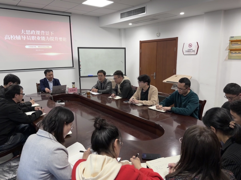 11月10日下午,我校马克思主义学院教授岳爱武应邀为计算机学院(网络空间安全学院)辅导员做题为《‘大思政课’视阈下辅导员职业能力提升要论》的专题讲座,讲座由学院党委副书记朱文镇主持,学院全体辅导员聆听了此次讲座。