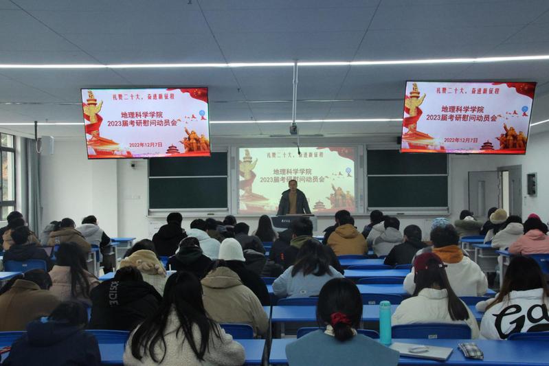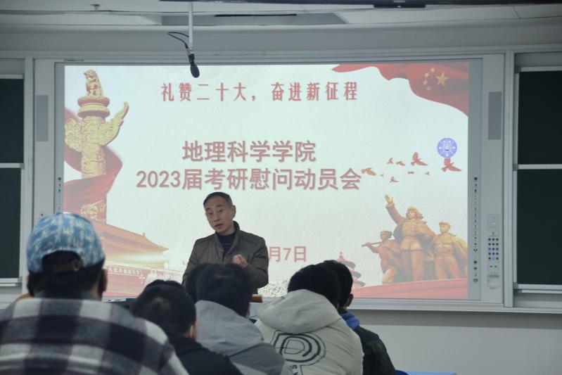 为鼓励2023届考研学子在最后冲刺阶段调整心态、积极备考,2022年12月7日下午14:00,地理科学学院在明德楼S401举行2023届考研慰问动员会。院党委书记殷跃峰出席,19级考研学生参加大会。动员会由19级本科生辅导员张莹瑞主持。