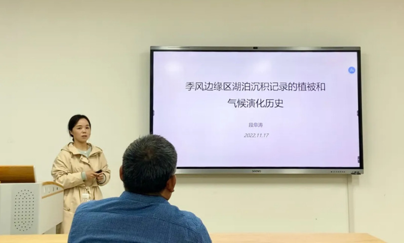 11月17日下午,法政学院第四十七期“天哲”学术沙龙在阅江楼118科技史与气象文明研究院学术报告厅举行,段阜涛老师做了“季风边缘区湖泊沉积记录的植被和气候演化历史”的报告。