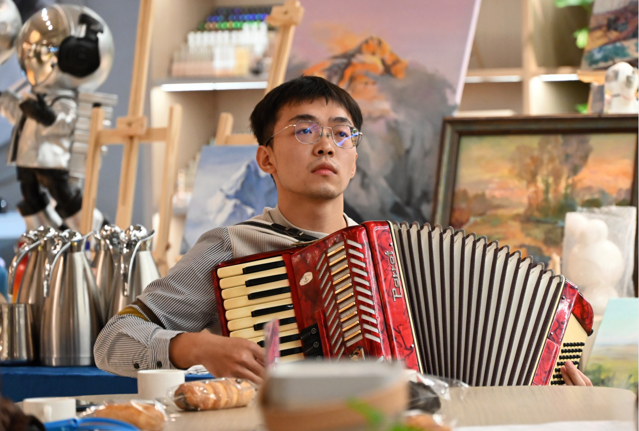 活动以《像我这样的人》开场,王晶老师向同学们分享了她和音乐的故事。葫芦丝、吉他、手风琴、尤克里里,不同的乐器表达着不同的情感,演绎着一首首曾经打动或激励过大家的歌曲,带给大家满满的感动。活动最后,来自2020级的黄汇丰同学用吉他演奏《夜空中最亮的星》,参会同学也情不自禁跟随着节奏哼唱起来,纷纷沉浸在音乐的美好和温暖中。
