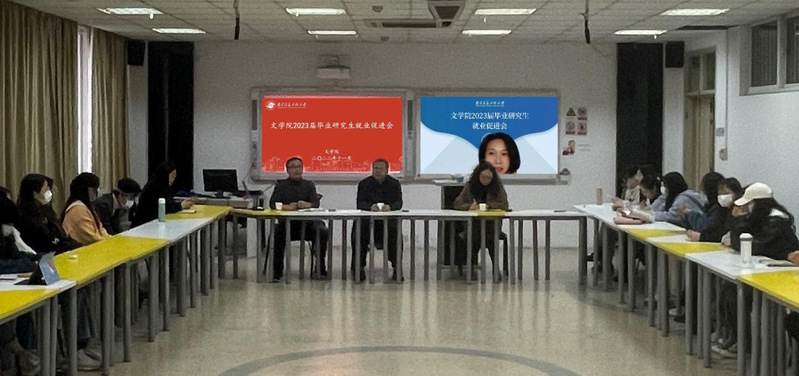 为进一步推进文学院2023届研究生高质量就业,切实做好就业过程中教、管、服务等工作,11月23日下午,文学院在文德楼C407教室召开了2023届毕业研究生就业促进会。文学院院长赵霞,党委副书记(主持工作)郭雨,研究生工作部副部长王继东,文学院党委副书记、副院长吴鹏飞,研究生辅导员邵芳及2023届全体研究生参加会议。会议由党委副书记、副院长吴鹏飞主持。