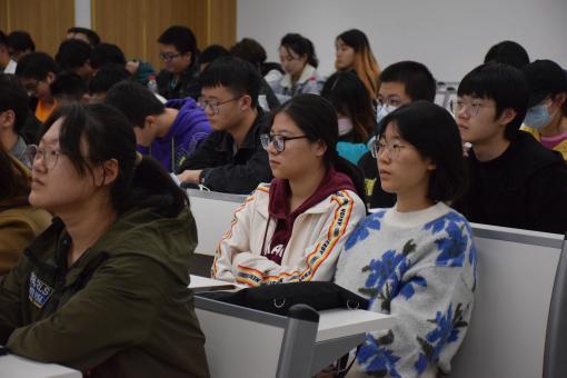 首先,许敏总结上半学期的教学情况,指出个别学生存在学习态度不端正、缺乏学习积极性的学习现状,她希望同学们端正学习态度,养成良好的学习习惯,在接下来一个月中,做到课上认真听讲,课后及时巩固复习,争取在即将到来的期末考中取得满意的成绩。随后,许敏简要介绍了环科院考研就业的基本情况,在疫情冲击之下,出国留学受到限制,考研已成为大势所趋,同学们应当积极关注考研现状,为未来的发展做好准备。她指出,部分学生缺乏省级竞赛、申报专利等科创方面的积极性,提醒同学们提前做好职业规划,在提高学习成绩的同时,主动增强自己的科研创新能力和社会实践能力,增强个人核心竞争力,为今后考研就业打下坚实的基础。