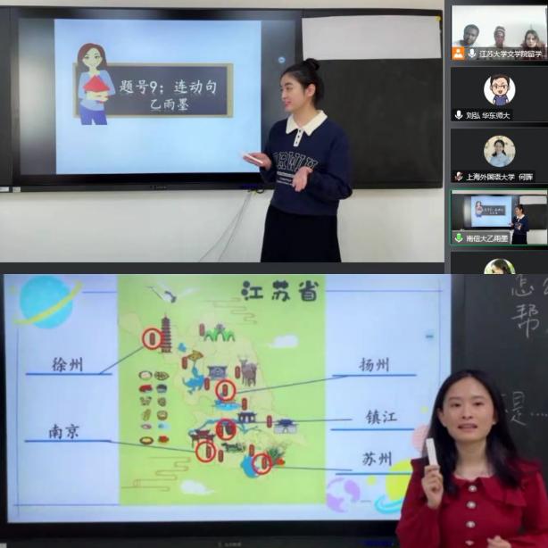 2022年11月26日,由江苏省文学类研究生教育指导委员会主办,江苏大学文学院与研究生院承办的江苏省研究生科研创新大赛——汉语国际教学技能暨中华才艺大赛正式拉开帷幕。本次比赛共有11所高校参加,除省内的南京大学、南京师范大学、南京信息工程大学、苏州大学、扬州大学及主办方江苏大学之外,还包括中国人民大学、上海外国语大学、华东师范大学、浙江大学、绍兴文理学院。我校参赛团队由徐开妍老师带队指导,乙雨墨、张梦琪两位同学参加教学技能比赛,奚睿安、王柯、佟嫄三位同学组队参加中华才艺比赛。