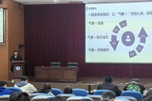 分享交流会上,三位嘉宾深入项目核心,详细阐述了选题方向、专利撰写及申请、路演答辩要点等内容,并强调了团队管理原则等,逐层点拨,循循善诱,激发了同学们积极参与、勇于尝试、敢于挑战的参赛热情。随后,分享嘉宾以个人参赛获奖作品为例,围绕技术、市场、人员配置等内容为同学们提供诸多宝贵建议。其中,王钰譞立足学科优势,为到场同学提供了“气象+”的立项思路,同时以行业白皮书及其相关政策鼓励大家在气象类竞赛中多多参与学习。
