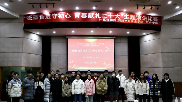 为推动学习宣传贯彻党的二十大精神走深走实,落实习近平总书记关于青年工作的重要思想,引导计算机学子在抒发知党、爱党、颂党的真情实感中汲取前行力量。11月30日晚,计算机学院、网络空间安全学院、软件学院研究生第四、七、八党支部在数字取证中心一楼报告厅联合开展了2022级研究生“砥砺奋进守初心,青春献礼二十大”主题演讲比赛。计算机学院、网络空间安全学院、软件学院全体22级研究生党员、入党积极分及研究生辅导员及参加了此次活动。