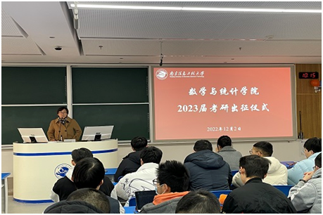 为鼓舞考研学生士气,坚定我院学子考研信心,12月2日上午,数学与统计学院在明德楼N115举行了2023届考研出征仪式。院党委书记贾冰、院长张志超、全体毕业班班主任和辅导员以及2023届全体考研学生参加出征仪式,仪式由贾冰主持。