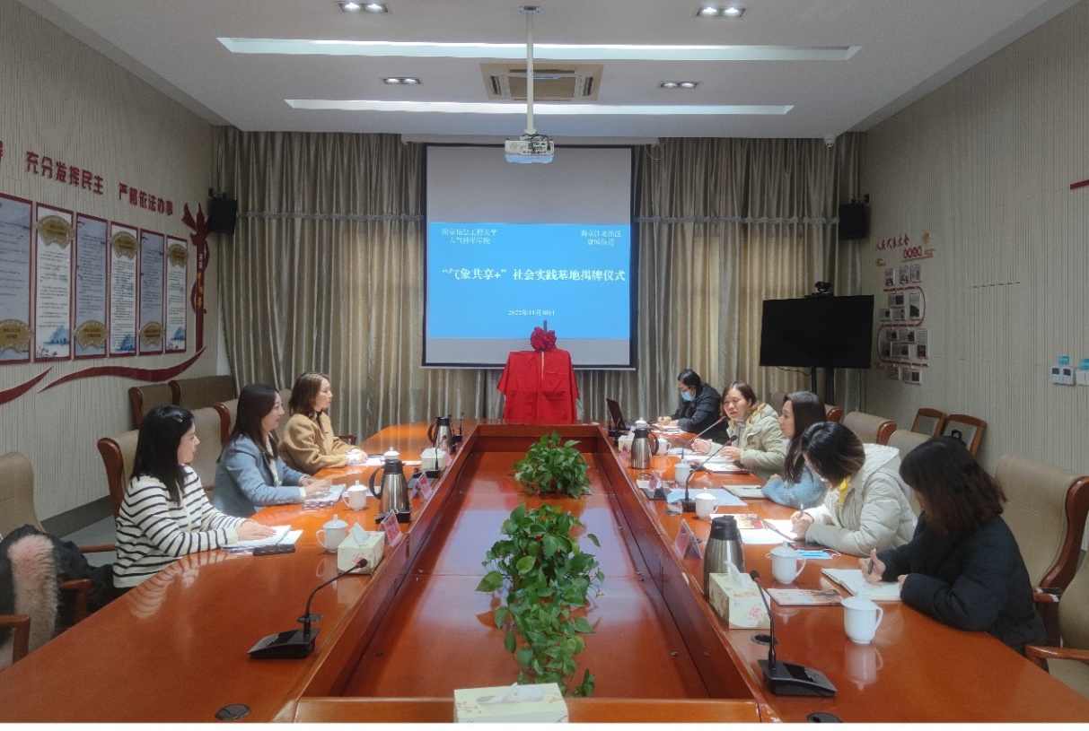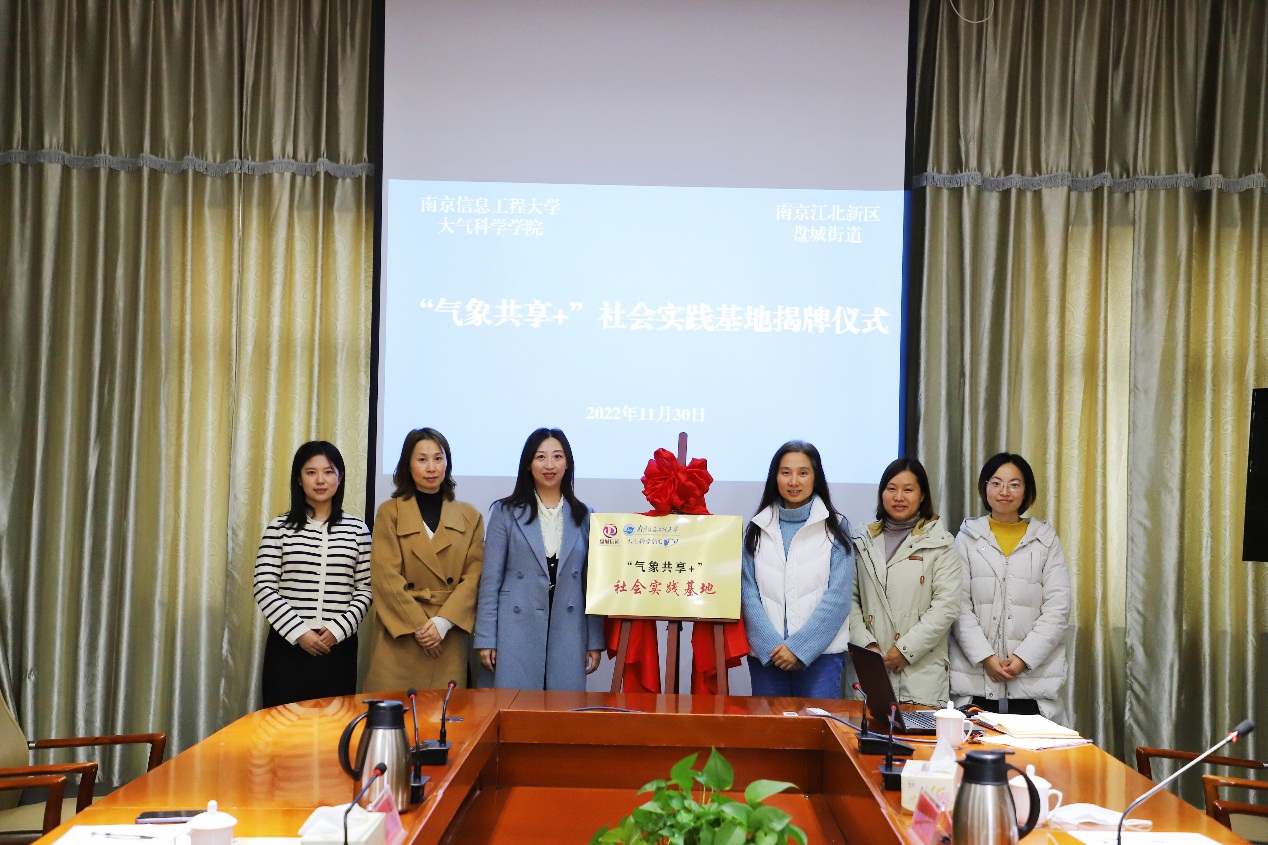 11月30日,大气科学学院联合江北新区盘城街道,在盘城街道财政所共同举行“气象共享+”社会实践基地揭牌仪式。盘城街道党工委组织委员阮蓓红,街道党群服务中心副主任潘萍、陈凤林,大气科学学院党委副书记、副院长张皓,院团委书记王晶出席活动。陈凤林主持仪式活动。