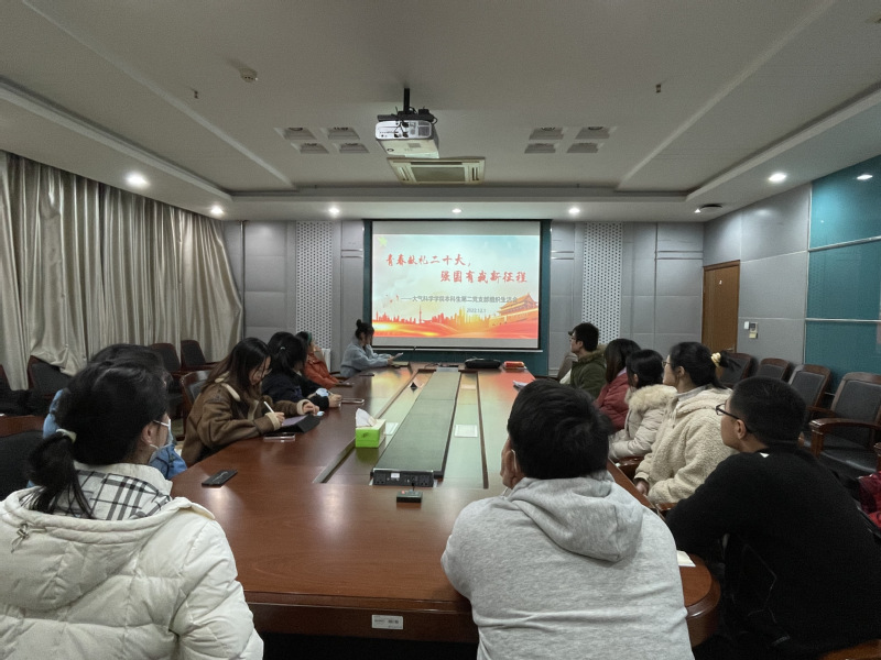 为深入学习贯彻党的二十大精神,引导大气学子从党的二十大报告中坚定信仰、汲取力量、增长智慧,12月1日晚,大气科学学院本科生第二党支部在气象楼713会议室举行“青春献礼二十大,强国有我新征程”主题党日活动。本次活动由吴芷沁同学主持,全体党员同志和支部书记范楚楚共同参与。