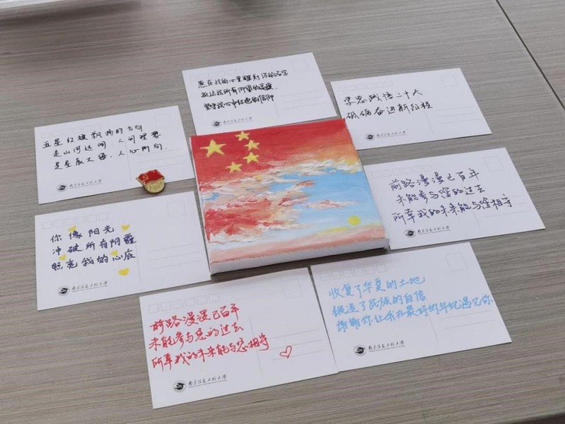 同时,为了进一步丰富学习形式,两个支部还联合开展了“一幅油画绘真情,三行情诗献给党”活动。党员们满怀热情,描绘了一幅幅中国共产党党徽、鲜艳闪耀的国旗、气势恢宏的天安门广场。每一幅作品都传递着浓浓的爱党爱国情怀,抒发着党员对党和国家无限的热爱之情。