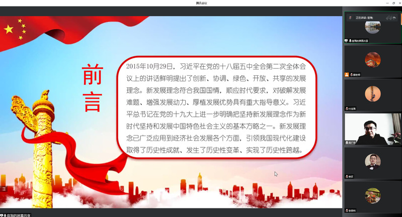 12月28日下午,人工智能学院(未来技术学院)线上举行党委理论学习中心组专题学习会,围绕“深入领会新发展理念精髓,推动学院工作迈上新台阶”主题进行集体学习。院党委副书记(主持工作)吴广宇主持会议,中心组全体成员参加学习会。