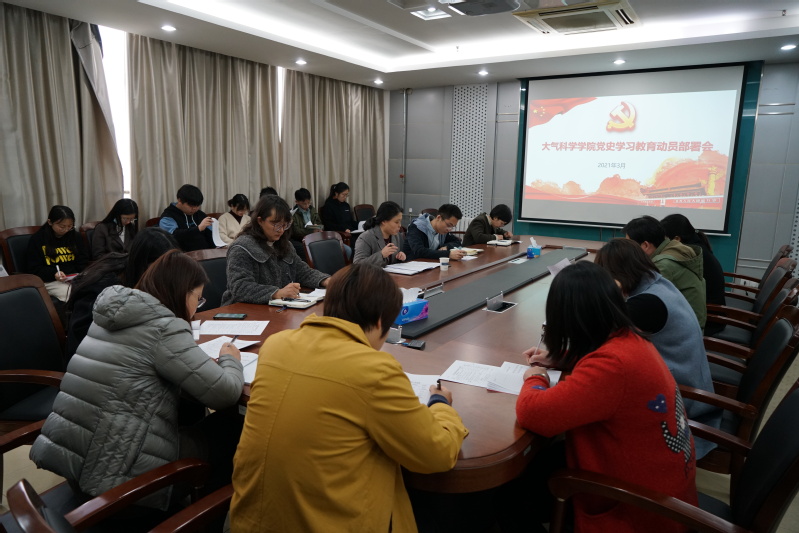 3月31日下午,大气科学学院召开党史学习教育动员部署会,深入贯彻落实习近平总书记在党史学习教育动员大会上的重要讲话精神,落实省委和学校党委关于党史学习教育的部署要求。学院全体党支部书记、党务秘书参加会议,学院党委书记周淑琴作动员部署。