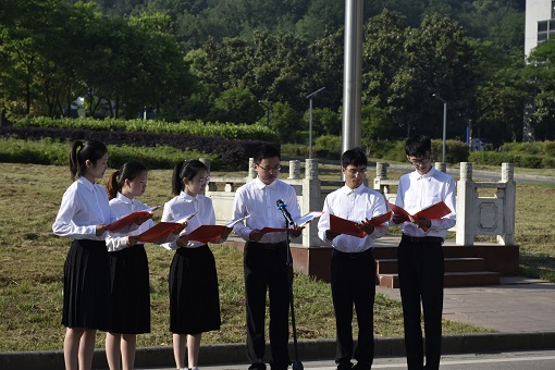 礼毕后,周淑琴书记发表国旗下讲话。她深情回顾了中国共产党波澜壮阔的百年征程和我国在中国共产党领导之下取得的举世瞩目的成就,号召新时代的气象学子要坚定理想信念,担当时代责任,锤炼品德修为,提高内在素质,练就过硬本领,义不容辞地拿起接力棒,把个人发展与国家、民族的命运紧紧联系在一起,以奋斗之姿,扛起百年荣光,担起民族复兴大任。随后,大气科学学院2018级本科生、校五四青年标兵任康年同学作为学生代表发言,他从百年来中国的沧桑巨变和自己在校期间的成长历程出发,号召全体同学牢记习近平总书记的嘱托,敢为人先、敢于突破,以聪明才智贡献国家,以开拓进取服务社会,在真刀真枪的实干中成就一番事业。最后,我院红色宣讲团带来了诗朗诵——《有一首歌》,宣讲团成员以富有感情的朗诵追忆党的峥嵘岁月,向党的百年华诞献礼,激发了在场师生的爱国热情。