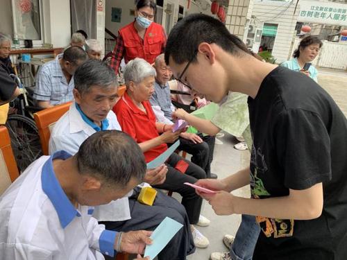 5月29日,化学与材料学院青协成员前往银杏树老年服务中心开展志愿服务活动。同学们为老人们带来了合唱表演、手工制作等活动,老人们非常高兴积极参与互动。合唱表演的第一曲是《飘向北方》,述说了少年为追逐梦想而背井离乡的故事。老人们虽已入古稀,但每个人都有年轻之时,都曾因梦想强迫融入,失意不安,惆怅而又踌躇。整体歌词鞭辟入里,直击人心。随后,伴随“我拥抱着爱,每当从梦中醒来…”歌词高声唱起,《最美的期待》旋律婉转柔和,萦绕院中,温暖院中人。