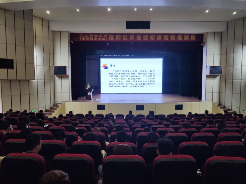 为深入学习贯彻习近平总书记在庆祝中国共产党成立100周年大会上的重要讲话精神,强化广大青年理想信念教育,砥砺青年政治品格,筑牢信仰之基,结合校团委发布的《关于开展“请党放心 强国有我”主题团日活动的通知》和学院实际,11月18日人工智能学院在大学生活动中心剧场举办“人工智能学院(未来技术学院)信仰公开课暨初级党校培训班——我与大学新生谈信仰”。本次公开课由人工智能学院(未来技术学院)关工委常务副主任王振会教授主讲,2021级全体学生参加。