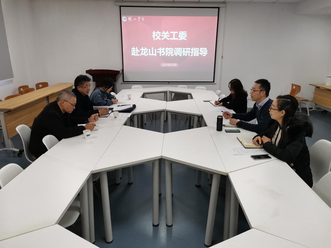 12月3日,校关工委副秘书长刘慧旻等一行莅临龙山书院,就基层关工委建设工作进行调研和指导。龙山书院关工委主任、书院党总支书记张京波,书院关工委常务副主任宗长才,书院关工委副主任、党总支副书记兼副院长刘红梅参加调研座谈。会议由张京波主持。