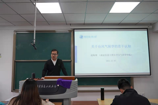 12月10日,大气科学专业拔尖班第六期学术报告会在尚贤楼606举行,大气院教授、博士生导师赵海坤以《关于台风气候学的若干认知》为主题作报告。2020级、2021级大气科学专业拔尖班全体同学们参加了本次报告会,院长助理、拔尖班班主任李青青研究员主持活动。