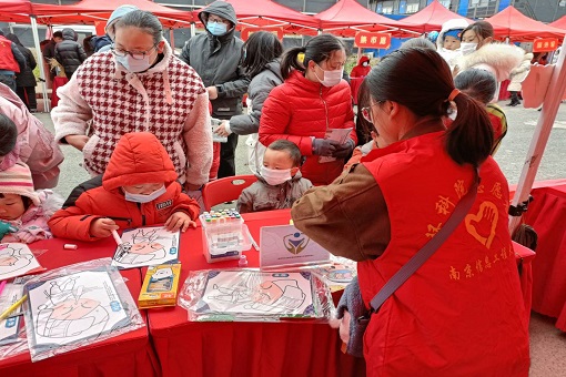 本次活动分为五个活动区域:党史学习区域、便民服务区域、商业融合区域、娱乐互动区域以及社会组织区域。社会组织区域由环科院青年志愿者协会与凌云未成年人社会服务中心共同承办,其目的是通过“绘画民族”主题活动帮助儿童培养“五十六个民族是一家”的民族团结意识。