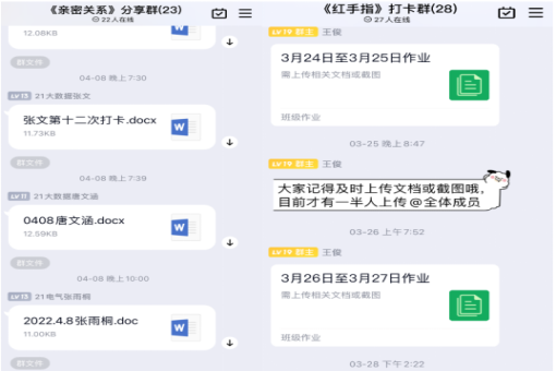 活动设立四个读书打卡群,每个群约20名同学,大家共同精读一本书,且每隔两日提交一次心得感悟。同学们借此机会养成边读书边思考的好习惯,及时记下感慨与感悟,并在群中畅所欲言,以书会友。参与人数共达85人,几乎所有同学能够按时打卡,交流心得,活动结束共收到2000余份心得。每一份心得都是一个个心灵的交流,都是一次次灵魂的碰撞。
