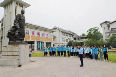 沐良师之风,聆听春风化雨的故事;踏行知之路,感悟薪火赓续的力量。为促进青年师范学子职业素养的提升和教育情怀的养成,引导他们立足乡村大地、树牢育人信念,5月28日下午,教师教育学院组织2021级地理科学(师范)、物理学(师范)以及化学(师范)三个专业的全体乡村教师定向师范生共134人,赴教育部研学营地暨南京市浦口区行知教育基地开展了“乡村教育环境感知”主题教育研学活动。教师院副院长刘玉柱、学院定向师范生专业指导老师以及辅导员参与了此次活动。活动由教师院副院长刘玉柱主持。