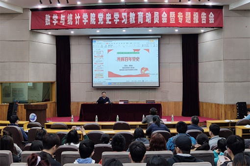 4月1日,数学与统计学院在长望楼报告厅召开党史学习教育动员会暨专题报告会,组织广大师生党员深入学习领会习近平总书记在党史学习教育动员大会上的重要讲话精神,做到学史明理、学史增信、学史崇德、学史力行,以优异成绩迎接建党100周年。数学与统计学院党委副书记(主持工作)贾冰主持会议,马克思主义学院岳爱武教授作专题报告,数统院院师生党员代表以及入党积极分子100余人参加会议。