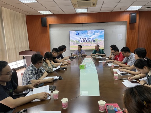 6月11日下午2点,大气物理学院在气象楼1115召开班主任工作例会,会议由院党委副书记、副院长陈建坤主持,院党委书记朱伟军、全体班主任和辅导员参加会议。