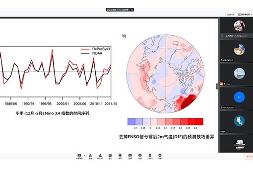 随后常乐同学在其《Prediction of Arctic Temperature and Sea Ice Using a High-Resolution Coupled Model》的报告中,以全球变暖下北极地区地表气温的增暖的现象为出发点,论述了北极气温和海冰的可预报性。