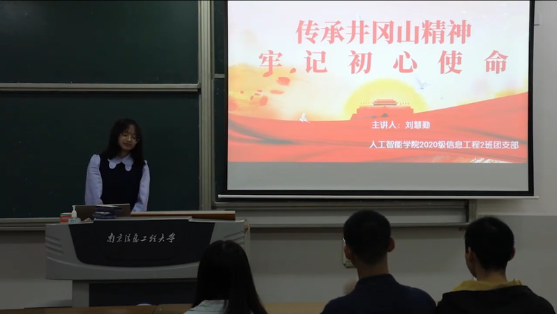 4月13日晚,人工智能学院20级信息工程专业2班团支部开展“传承井冈山精神,牢记初心使命”主题团课活动。