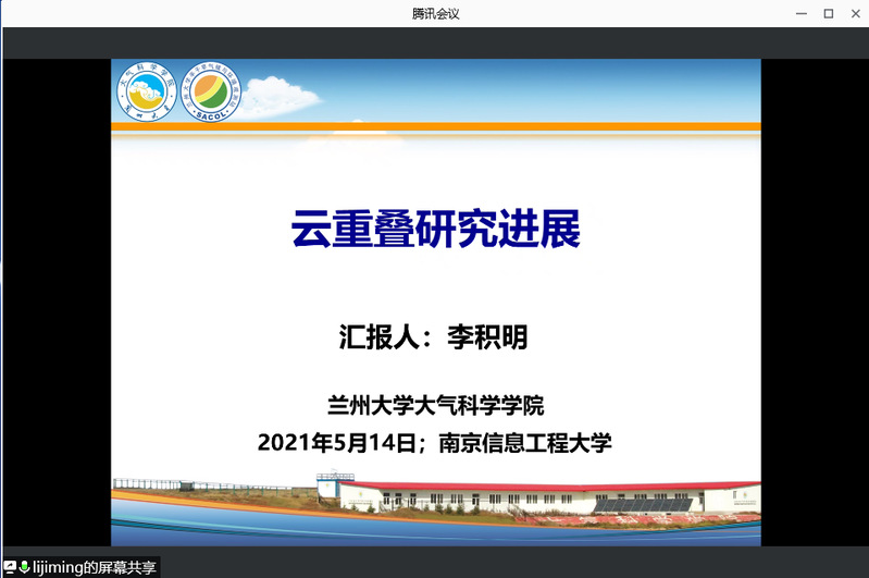 2021年5月14日下午,我校杰出校友、兰州大学大气科学学院李积明教授应邀通过腾讯会议为广大师生作了题为“云重叠研究进展”的学术报告。报告会由大气物理学院陆春松教授主持。该报告为我校2021年科技活动月之大物名师讲座系列报告活动之一。