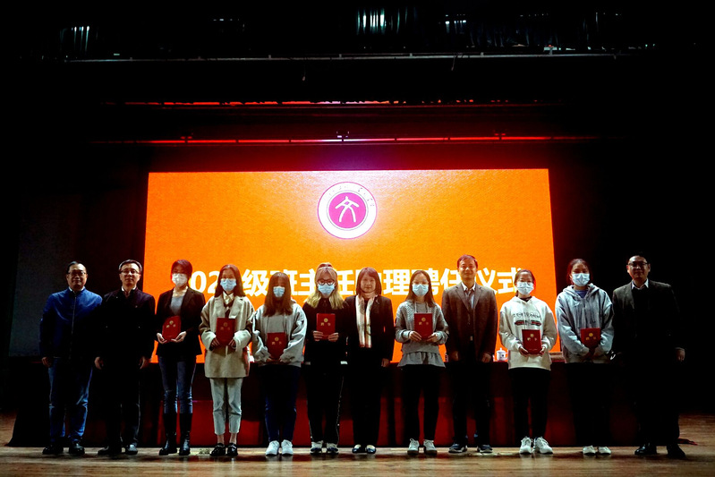 随后,范勇宣读了聘任2021级班主任名单和2021级班主任助理名单,全体院领导为班主任老师和班主任助理颁发聘书。