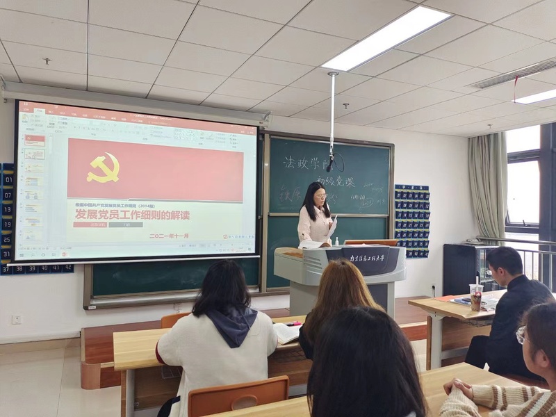 11月17日下午,法政学院初级党课第四讲在阅江楼639教室召开。本次党课由学办主任王娟老师围绕“如何加入中国共产党”开讲。21级法政学院全体学生认真听课并做笔记。