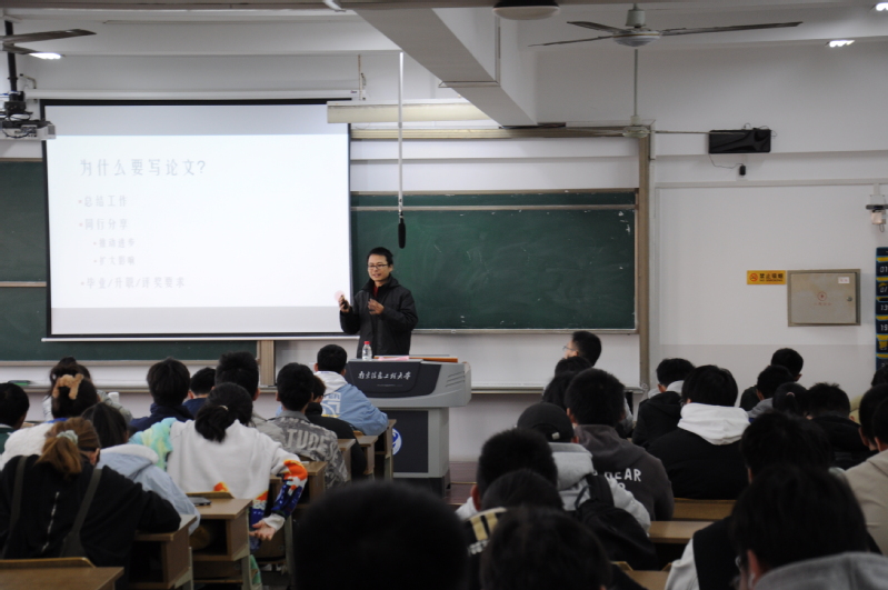 12月2日下午,人工智能学院(未来技术学院)月度主题第二课堂之“班主任大讲堂”第二期在滨江楼BN501开讲,本期邀请人工智能学院18级信工1班班主任孙文赟副教授为20级和21级信息工程专业学生详细讲解有关于科技论文写作的基本内容,向学生们展现了科技论文写作的技巧与突破口,让学生们对科技论文写作有充分的了解。
