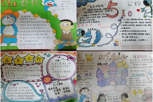通过设立宿舍公约,解决生活中的小问题,可以使宿舍更文明,校园更温馨,同时也可以提高寝室生活质量,增强宿舍幸福感和凝聚力,提高宿舍成员的自觉性和自律性。此次活动要求各寝室成员共同商定、共同创作,以手抄报的形式制定寝室行为规范与学习、生活目标,一周时间里,宿舍的小伙伴们围坐在一起,共同构思,从公约制定、修改、美工到最后展示阶段,大家相互探讨、分工合作,寝室成员分工明确,各司其职,共同为宿舍荣誉出谋划策。同学们发挥想象力,满怀信心地书写下各自目标、作息时间、学习时间、宿舍卫生分配等内容,用画笔描绘出理想宿舍的蓝图,为自己宿舍的文明公约添上独一无二的色彩。彩笔不仅装饰了宿舍公约,让原本单调的纸更加五彩缤纷,也展示出青春的蓬勃与激情。