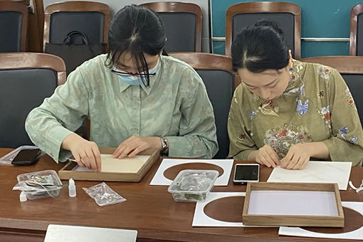 座谈会后,学院为留校的同学们开展“寓见·团圆”——中秋花艺装饰品DIY活动。学院留校的2020级拔尖班学生、2018级本科生以及硕博研究生在辅导员刘伟老师的指导下用花朵、枝叶等材料进行剪贴拼接,制作出一幅幅寓意美满的花艺装饰,样式精美,寓意美满。