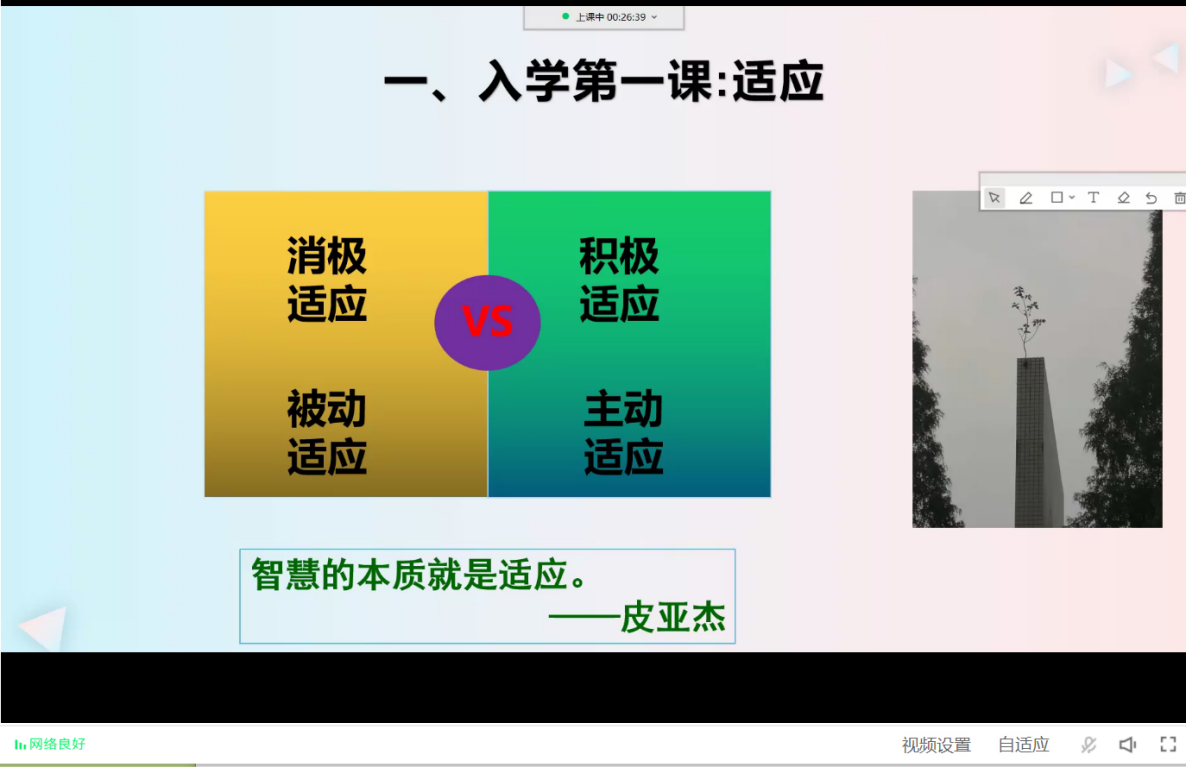 9月29日上午,校心理健康教育中心主任钱春霞主讲”‘预见’更好的自己——新生心理适应”线上主题讲座。钱春霞以“适应”为主题,重点讲解了大学学习生活中可能会遇到的理想与现实冲突问题、独立性问题、学习适应问题、人际适应问题、校园恋爱问题和职业规划问题,并为同学们如何应对这些问题作了专业的指导。