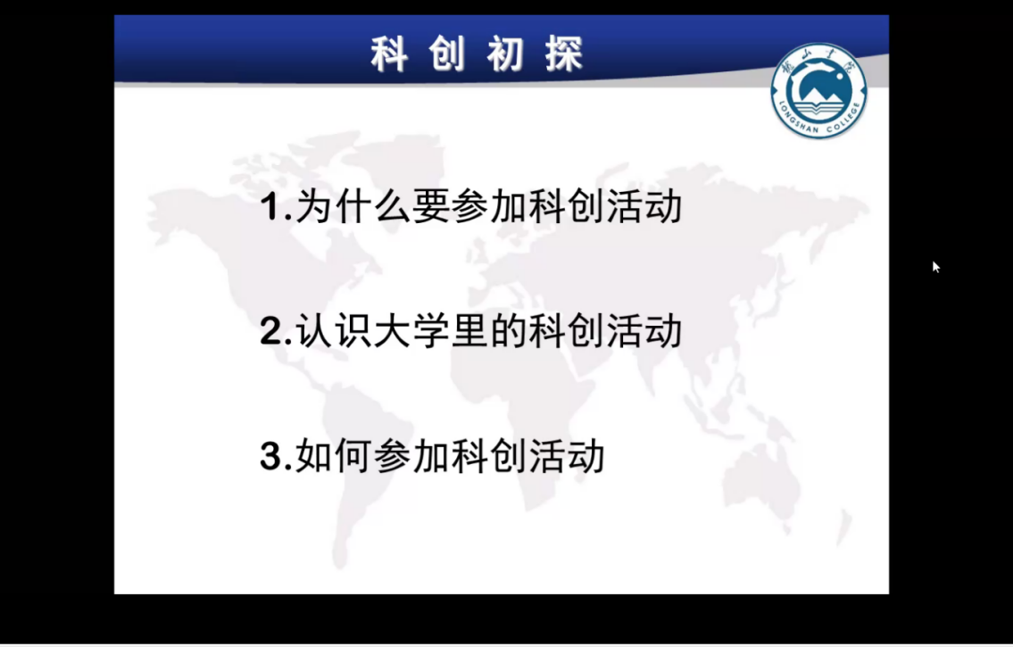 9月18日,龙山书院辅导员刘金星主讲“科创初探——新生双创教育”线上讲座。刘金星结合自身经验从“为什么要参加科创活动”“认识大学里的科创活动”和“如何参加科创活动”三个方面细致地为新生做了科创启蒙,他表示参加科创是为了锻炼自我,劝勉同学们要了解自己的专长,切忌盲目报名,踏实认真地做好每一件事。此次讲座揭开了科创活动在同学们心中的神秘面纱,激发了同学们对科创活动的好奇心,提高了参与科创活动的积极性。