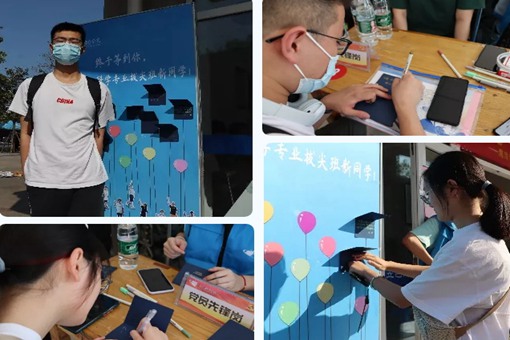 报到日当天,所有新生都参加了“写给未来的自己”主题活动。同学们在印着自己照片的展板上写下对自己、对未来的寄语。有的同学希望自己能不断拼搏,走出一条属于自己的路;有的同学相信自己在四年的大学生活中不断磨练专业技能,成为一名出色的“天气之子”;有的同学祝愿在未来的四年里自己能和学校同呼吸,共命运。“写给未来的自己”在入学第一天帮助大家树立远大目标,合理规划大学时光。作为入学教育的第一项活动,起到了良好的教育引导作用。
