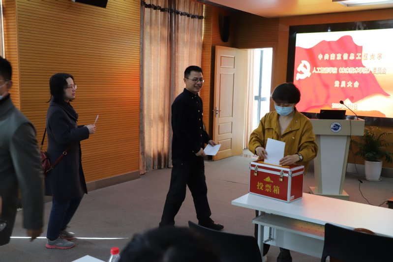 全体参会党员一致表决通过了党委工作报告。会上,副院长李春彪宣读了校党委《关于同意人工智能学院党委召开党员大会的批复》和《关于同意人工智能学院(未来技术学院)党委报来的委员候选人预备人选的批复》;院长助理宦海宣读了《中共南京信息工程大学人工智能学院(未来技术学院)委员会换届选举办法(草案)》;院长助理周先春宣读了《中共南京信息工程大学人工智能学院(未来技术学院)委员会换届选举工作人员建议名单》。大会以举手表决的方式通过了选举办法和工作人员建议名单。全体参会党员通过无记名投票方式,差额选举出倪东鸿、秦书乐、李春彪、宦海、周先春同志为中共南京信息工程大学人工智能学院(未来技术学院)委员会新一届委员。