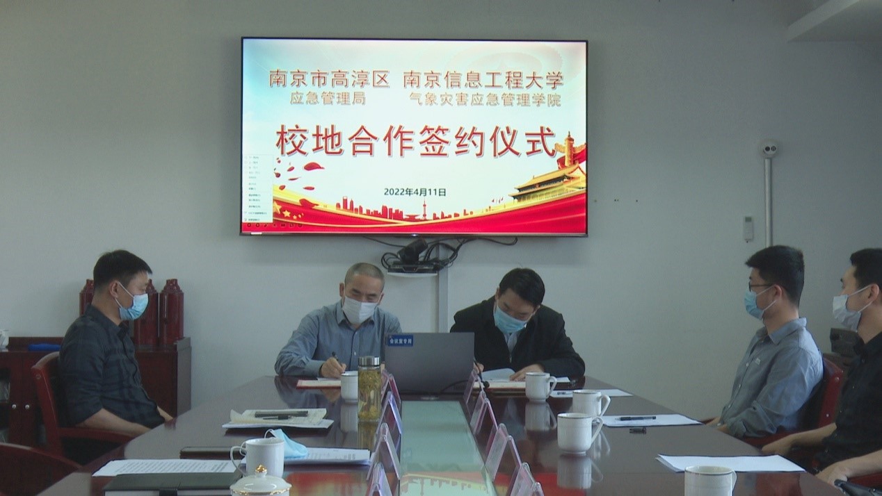 4月11日下午,南京信息工程大学气象灾害应急管理学院与南京市高淳区应急管理局签署校地合作协议,会议由高淳区应急管理局副局长王哨兵主持。