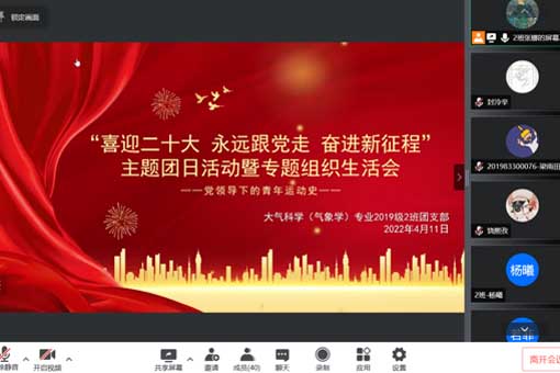 为迎接党的二十大,进一步帮助广大青年树立坚定跟党走、建功新时代的理想信念,引导广大青年厚植爱党、爱国、爱社会主义的情感,大气院组织2019级本科生各团支部围绕“喜迎二十大,永远跟党走,奋进新时代”开展主题团日活动。