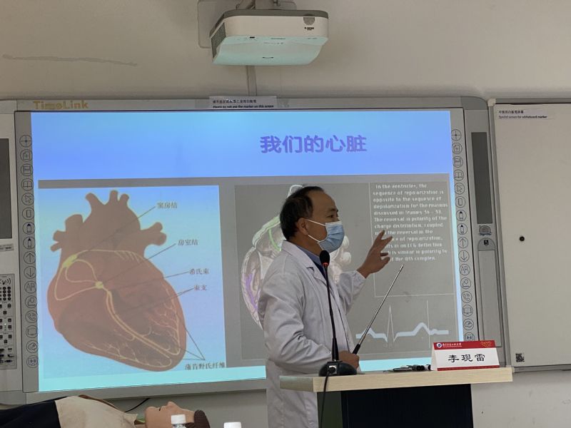 为向学院广大师生推广普及医疗急救知识,提高意外情况下有效自救和互救能力,11月13号上午,由文学院联合南京市红十字会(以下称“南京红会”)、南京鼓楼医院集团高新医院(以下称“高新医院”),在文德楼C407多媒体教室为我校师生举行“关爱生命 救在身边”——CPR+AED急救知识培训。高新医院副院长侯小龙以及南京红会、江北医院等单位的9名医护专家承担培训。我校部分教师和80余名学生参加培训,文学院党委副书记、副院长吴鹏飞主持该活动。