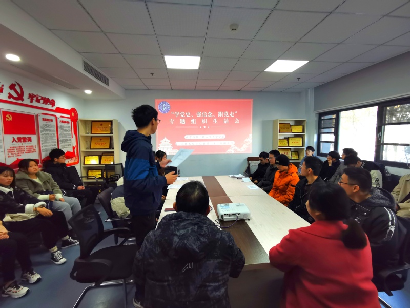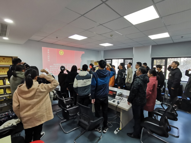 会议开始,全体参会同学面向团旗合唱团歌。随后,团支部书记、支部委员与团小组组长先后汇报发言,对这一年党史学习情况做了总结分享,同时对照习近平总书记对团员青年的一系列要求和希望,思考职责使命,依次从思想、学习、生活等方面分析了自身和班级团支部的优点以及不足,并对未来的工作开展进行了规划,也代表班级团员对支部工作提了切实的建议。发言结束后,团支书公布了2021年班级团支部先进性评价结果,并鼓励其他团员对标看齐,共同努力。接着,团支书对支部团员的党史学习情况进行检测,支部成员踊跃抢答,证明了较好的学习成效。随后赵魏丹对此次示范会的充分准备表示肯定,感谢了支部主动承担示范会的担当,也提出了支部工作在今后的目标和方向,希望支部团员青年能够围绕学风建设、志愿服务等内容开展支部的品牌活动,做好同学身边的共青团工作。最后王康宏对此次示范专题组织生活会进行点评,他指出青年大学生要树立正确的人生观、价值观,在奋斗的路上要立大志,将学习与实践相结合,将物质世界与精神世界相联系,透过现象看出本质,明辨是非,在大学生活中成就更好的自己。会议最后,全体团员起立重温入团誓词并郑重宣誓,再次深切感知团的号召。