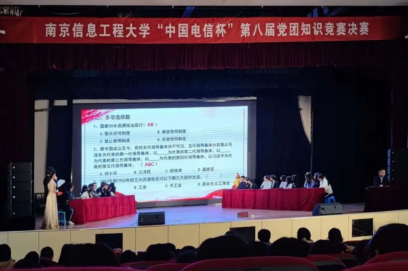 12月4日晚,由校党委宣传部和校团委主办、法政学院承办、各院分团委协办的南京信息工程大学“中国电信杯”第八届党团知识竞赛在大学生活动中心二楼小剧场圆满落幕。马克思主义学院荣获一等奖,法政学院、管理工程学院、大气科学学院获得二等奖,文学院、商学院、大气物理学院和雷丁学院获得三等奖。