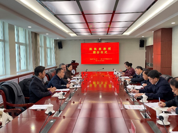为推进科技重大专项和联合基金项目申报、援建西宁大学等合作事宜,我校一行访问青海师范大学。青海师范大学、西宁大学筹建办公室聘任我校陈铁喜教授为西宁大学筹建阶段生态与环境科学学院院长、青海师范大学地理科学学院副院长。青海师范大学校党委副书记、常务副校长马德明,党委副书记许存宁,西宁大学筹建办公室副主任、青海省教育厅一级巡视员孙立明,副主任樊协珍,以及相关负责同志参加聘任仪式。聘任仪式上,南京信息工程大学、青海师范大学、西宁大学筹建办公室负责同志作了讲话,陈铁喜表示将以“热爱担当、诚心学习、团结协作、创新务实”的工作作风,为学院建设发展做出贡献。