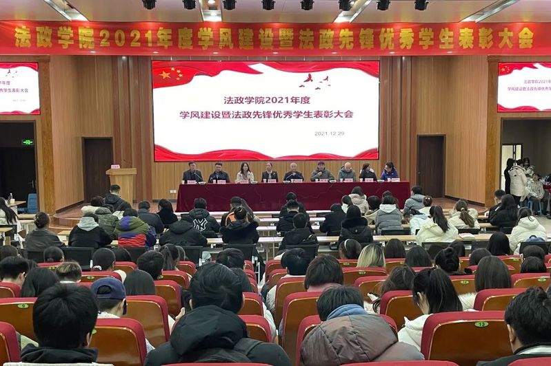 为深入推进学院学风建设,进一步发挥优秀学生的模范带头作用,12月29日下午,法政学院在滨江楼报告厅召开2021年度学风建设暨法政先锋优秀学生表彰大会。校关工委副秘书长范天森、院关工委常务副主任赵海燕、学院全体领导班子、班主任代表、全体辅导员参加本次大会。大会由法政学院党委副书记兼副院长朱文镇主持。